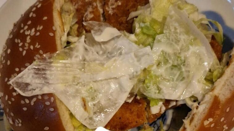 L’accaduto raccontato da Luca Monaco di Repubblica, risale alla sera del 29 luglio. Pirone aveva comprato un menu Crispy McBacon, patatine, una bibita e un McChicken. Una volta a tavola, la moglie ha provato a tagliare il panino in due, ma non riusciva. Solo in quel momento i coniugi hanno scoperto la presenza della busta di plastica all’interno della cotoletta di pollo. “Era per mia moglie – racconta Pirone – quando abbiamo visto quella roba siamo rimasti senza parole. È inaccettabile”. Il 49enne ha scattato delle foto come prova e ha conservato lo scontrino dell’acquisto.