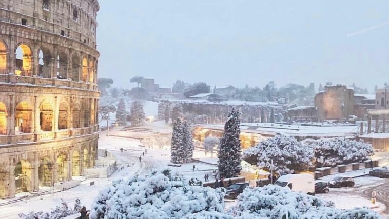 Un dicembre innevato a Roma sembra quasi fantasia. Infatti, nella Capitale la neve è così rara da sembrare una leggenda urbana. D’altra parte, quando arriva, cambia tutto. Le piazze diventano silenziose, i monumenti sembrano usciti da un film e le strade storiche si trasformano in scenari magici. Tuttavia, in un secolo può nevicare appena una decina di volte. Quindi, ogni episodio diventa un ricordo collettivo che resta per anni. Inoltre, pensare al Colosseo o a piazza Venezia sotto un velo bianco fa subito sognare. Eppure, nonostante la sua rarità, la neve a Roma non è impossibile. Anzi, capita abbastanza da entrare nella memoria dei romani come un piccolo miracolo invernale. D’altronde, il fascino di vedere la città eterna imbiancata è unico e continua a incuriosire ogni generazione.